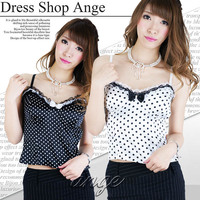サテン&レース ドットリボンつきキャミソール