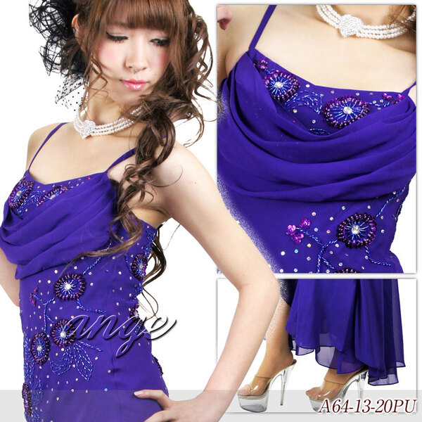 【送料無料】キャバドレス/シフォン&スパンコール ホルターネックドレス \13,000(税別) |