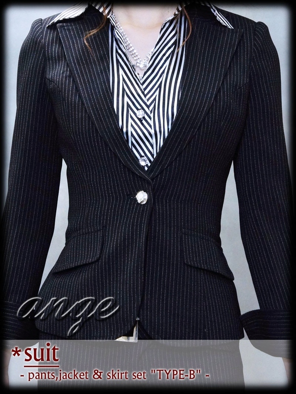 【送料無料】キャバスーツ/フリルシャツ付き ストライプパンツ&スカートスーツ4点セット☆タイプB \12,000(税別) |