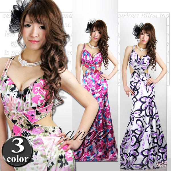 キャバドレス/シフォン 胸元フラワープリント ウエストカットドレス \5,980(税別) |