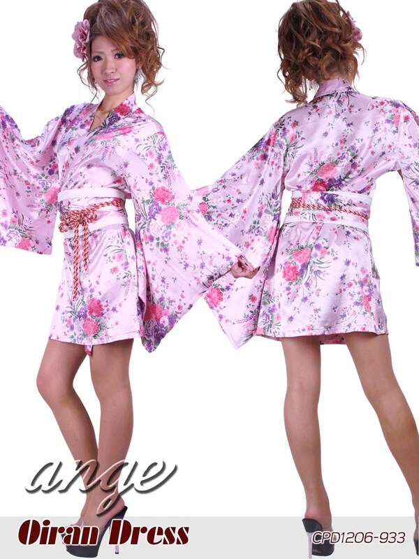 キャバドレス/ひらひら サテン和柄 ミニ花魁着物ドレス \7,000(税別) |