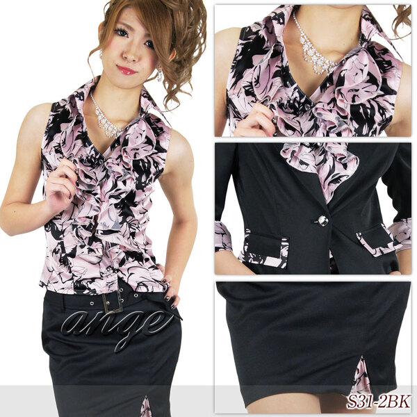 キャバスーツ/フリルシャツ付き セクシータイトスカートスーツ3点セット \9,800(税別) |