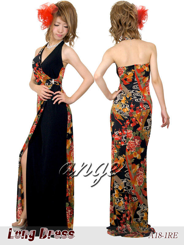 【送料無料】キャバドレス/ストレッチ ベア 和柄ロングドレス \12,190(税別) |